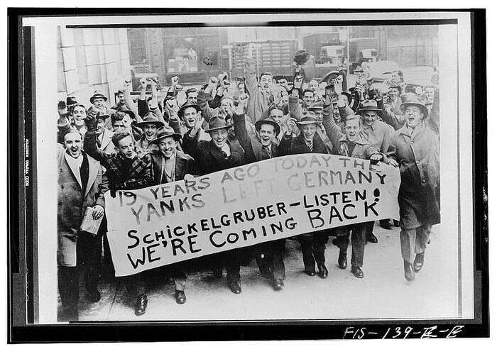 Pvt Baluk was a resiednt in philly and would have loved this scene and crowd i imagine. The context behind it was an effort to counter the radical fascism that was engulfing Europe, soldiers joined the Army to defend their nation and the freedom of others. This was a message to the enemy, saying we did it once we can do it again.